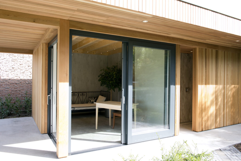 Deze luxe mantelzorgwoning is multifunctioneel ontworpen. Zo fungeert deze nu als mantelzorgwoning, maar kan ook als tuinkamer dienen als de zorgvraag verdwijnt.